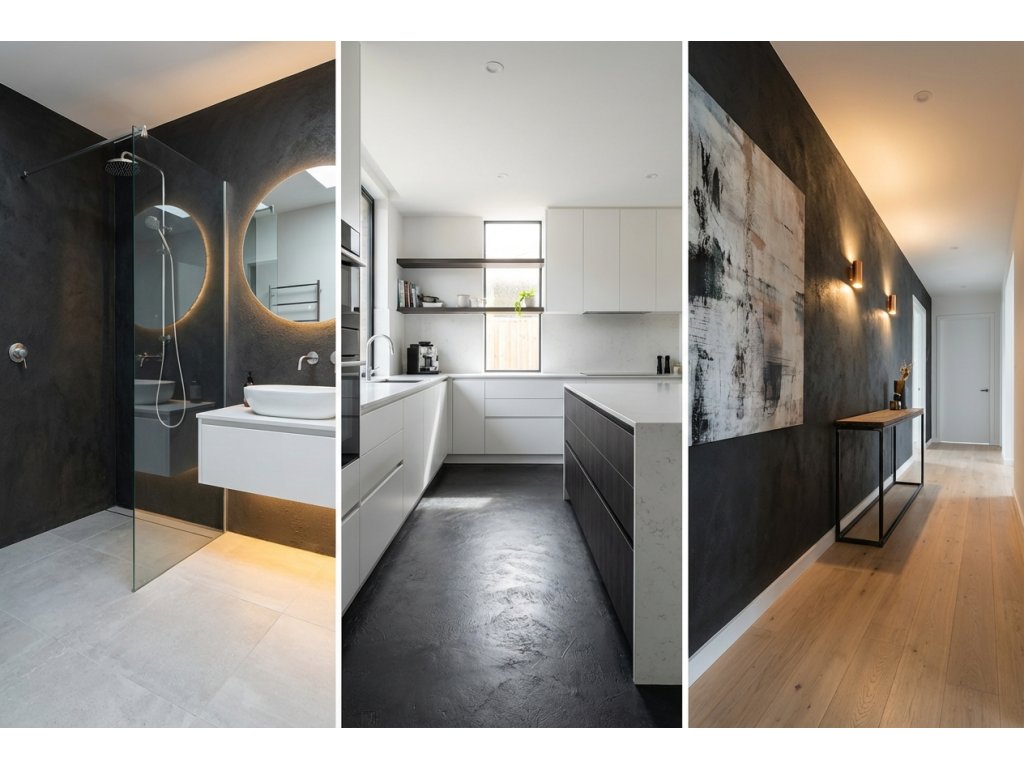 Dekorativní a funkční stěrka vhodná do interiéru i exteriéru. Betonové stěrky nejsou pouze krásné designové řešení, ale i velice odolné a funkční řešení pro Váš domov. V interiéru lze využít tento materiál například na stávající obklady v kuchyni, na schodiště, v koupelně nebo přímo ve sprchovém koutě. Ve sprchovém koutě je potřeba stěrku opatřit finálním lakem vhodným pro stále zatížení vodou. Při aplikaci stěrky na vodorovnou plochu v interiéru doporučujeme povrch opatřit lakem epoxidovým či polyuretanovým. V exteriéru lze využít stěrku na veškeré svislé plochy jako jsou fasády domů, ploty ze ztraceného bednění, opěrné zídky, komíny, soklové části domů i krby.