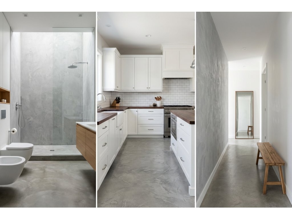Dekorativní a funkční stěrka vhodná do interiéru i exteriéru. Betonové stěrky nejsou pouze krásné designové řešení, ale i velice odolné a funkční řešení pro Váš domov. V interiéru lze využít tento materiál například na stávající obklady v kuchyni, na schodiště, v koupelně nebo přímo ve sprchovém koutě. Ve sprchovém koutě je potřeba stěrku opatřit finálním lakem vhodným pro stále zatížení vodou. Při aplikaci stěrky na vodorovnou plochu v interiéru doporučujeme povrch opatřit lakem epoxidovým či polyuretanovým. V exteriéru lze využít stěrku na veškeré svislé plochy jako jsou fasády domů, ploty ze ztraceného bednění, opěrné zídky, komíny, soklové části domů i krby.