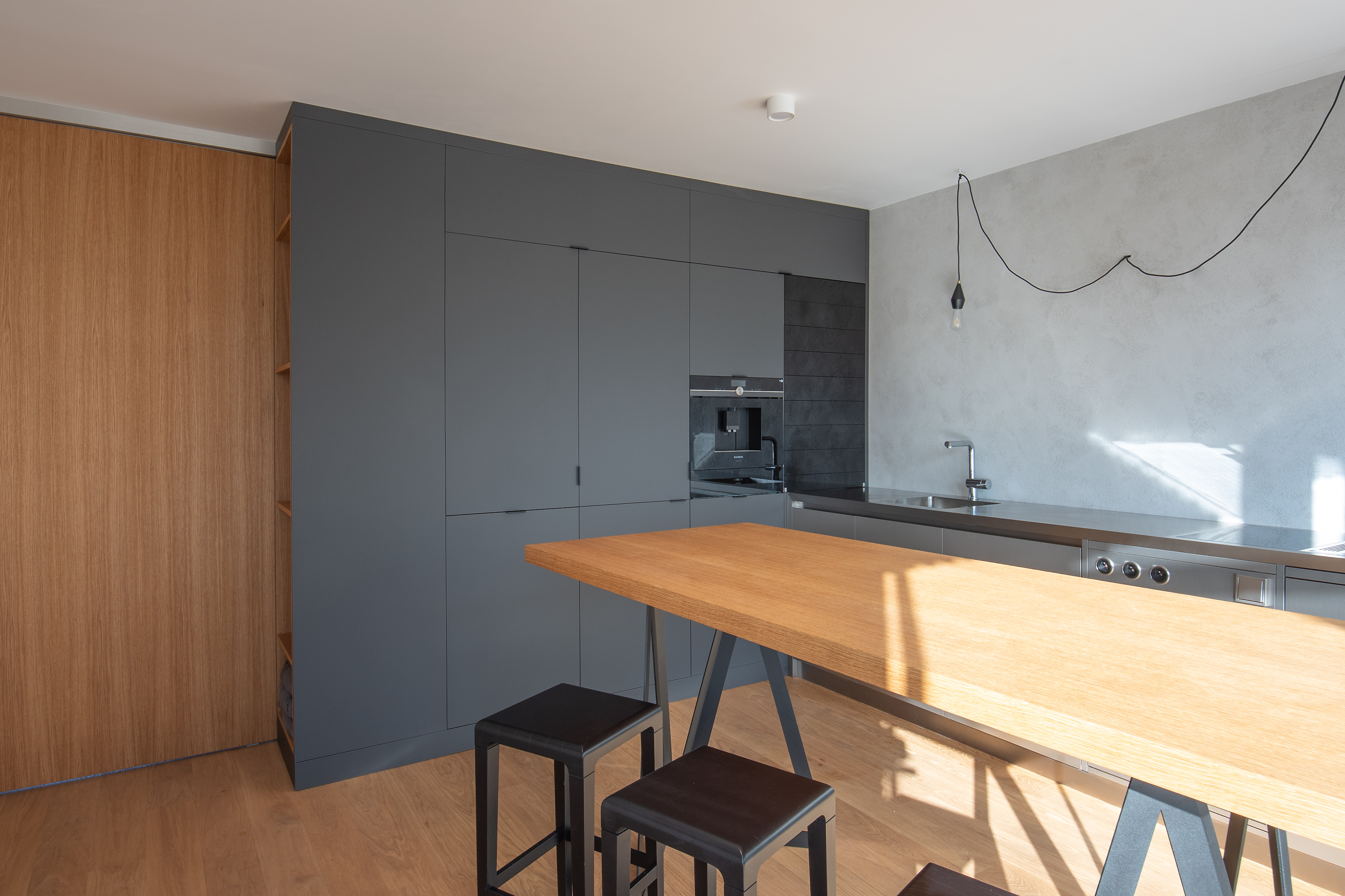 Kdybych měl uvést nejčastější realizaci betonové stěrky dle místa aplikace, určitě to bude kuchyň a prostor za kuchyňskou linkou. Betonová stěrka je ideálním povrchovým materiálem právě pro kuchyně a to hlavně díky své odolnosti, jednoduché aplikaci a krásnému vzhledu. Materiál je zároveň zdravotně nezávadný. Doporučuji na dekorativní stěrku aplikovat jako finální vrstvu i lak (akrylátový, polyuretanový).