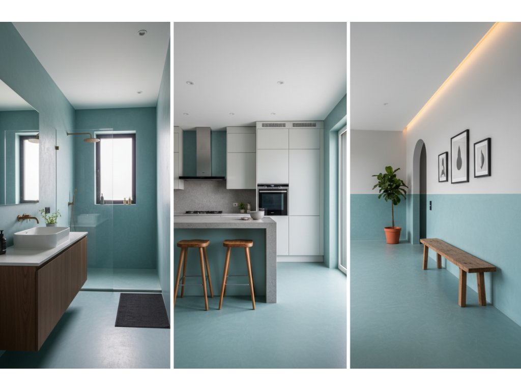 Dekorativní a funkční stěrka vhodná do interiéru i exteriéru. Mikrobeton není pouze krásné designové řešení, ale i velice odolné a funkční řešení pro Váš domov. V interiéru lze využít tento materiál například na stávající obklady v kuchyni, na schodiště, v koupelně nebo přímo ve sprchovém koutě. Ve sprchovém koutě je potřeba stěrku opatřit finálním lakem vhodným pro stále zatížení vodou. Při aplikaci stěrky na vodorovnou plochu v interiéru doporučujeme povrch opatřit lakem epoxidovým či polyuretanovým. V exteriéru lze využít stěrku na veškeré svislé plochy jako jsou fasády domů, ploty ze ztraceného bednění, opěrné zídky, komíny, soklové části domů i krby. Jaký je rozdíl mezi mikrobetonem a klasickou betonovou stěrkou? Rozdíl je ve složení plniv. Mikrobeton byl navržen tak, aby aplikační vlastnosti splňovali téměř jakýkoliv požadavek při realizaci. Díky jeho vylepšeným vlastnostem lze snadněji docílit zcela hladkého povrchu nebo ušetřit čas tím, že lze aplikovat obě vrstvy v jeden den. Vylepšením prošla i lazurovací barva která má díky jinému složení prodlouženou dobu schnutí což snižuje rizika při aplikaci (viditelné napojení lazury, pracnost rozetírání lazury).