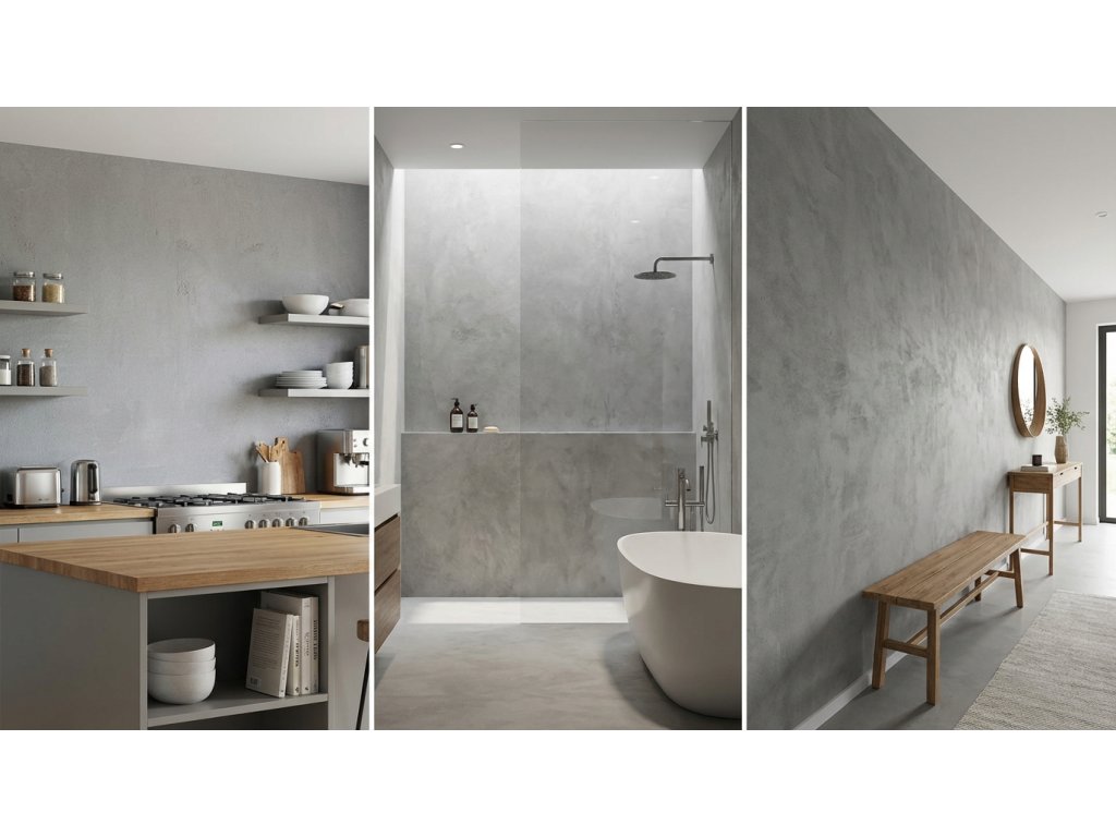 Dekorativní a funkční stěrka vhodná do interiéru i exteriéru. Mikrobeton není pouze krásné designové řešení, ale i velice odolné a funkční řešení pro Váš domov. V interiéru lze využít tento materiál například na stávající obklady v kuchyni, na schodiště, v koupelně nebo přímo ve sprchovém koutě. Ve sprchovém koutě je potřeba stěrku opatřit finálním lakem vhodným pro stále zatížení vodou. Při aplikaci stěrky na vodorovnou plochu v interiéru doporučujeme povrch opatřit lakem epoxidovým či polyuretanovým. V exteriéru lze využít stěrku na veškeré svislé plochy jako jsou fasády domů, ploty ze ztraceného bednění, opěrné zídky, komíny, soklové části domů i krby. Jaký je rozdíl mezi mikrobetonem a klasickou betonovou stěrkou? Rozdíl je ve složení plniv. Mikrobeton byl navržen tak, aby aplikační vlastnosti splňovali téměř jakýkoliv požadavek při realizaci. Díky jeho vylepšeným vlastnostem lze snadněji docílit zcela hladkého povrchu nebo ušetřit čas tím, že lze aplikovat obě vrstvy v jeden den. Vylepšením prošla i lazurovací barva která má díky jinému složení prodlouženou dobu schnutí což snižuje rizika při aplikaci (viditelné napojení lazury, pracnost rozetírání lazury).